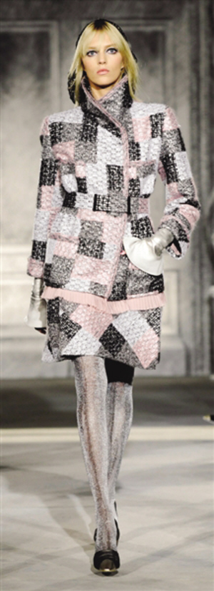 然而,真正把粗花呢带上时尚舞台的却是来自另一个国度的香奈尔,由香奈尔经典套装带动的Tweed热潮在20世纪五六十年代极为盛行,而且不再是户外概念的英式风格,而是赋予了粗花呢更多的法式浪漫和都会气息。