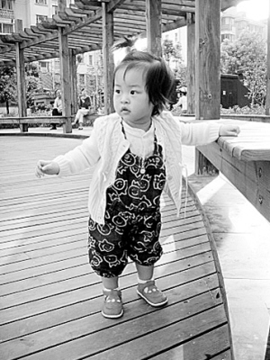 那天,趁老婆去上班,我带女儿到广场教女儿学走路。刚开始女儿不肯下地,放下就哭。我只好用小玩具逗她迈步子。女儿不停的哭声引来周围人异样得得目光,但我知道这个时候不能对她心软,渐渐地女儿能牵着我的手踉踉跄跄的走上两三步了。