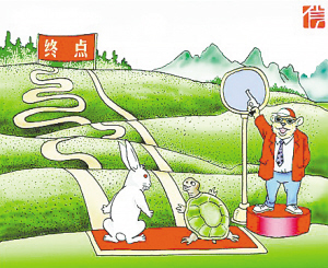 “龟兔赛跑”是个不通之极的寓言。因为人人都知道,兔再打瞌睡,再偷懒,也必然比龟跑得快。