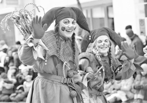 11月23日,在加拿大蒙特利尔,表演者们参加圣诞巡游。