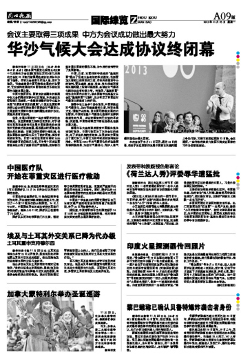 华沙气候大会达成协议终闭幕