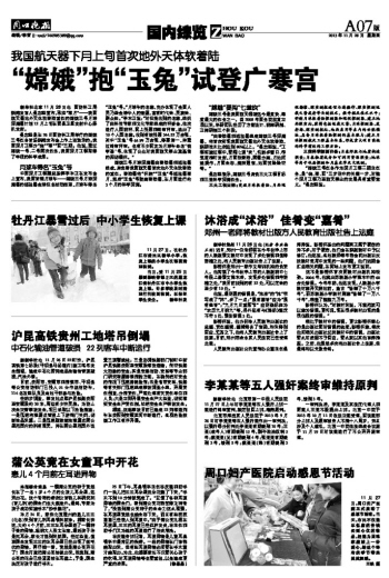 新华社北京11月26日电 国防科工局新闻发言人吴志坚宣布,承担“落月”——我国航天器地外天体软着陆重任的嫦娥三号月球探测器计划12月上旬在西昌卫星发射中心择机发射。