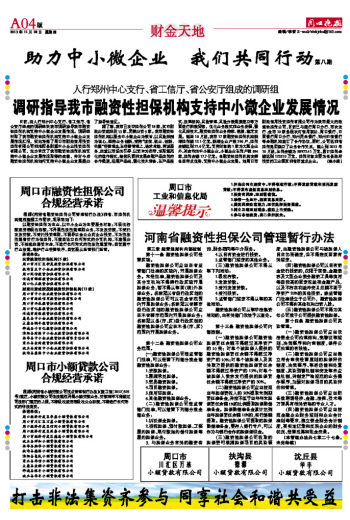 调研指导我市融资性担保机构支持中小微企业发展情况