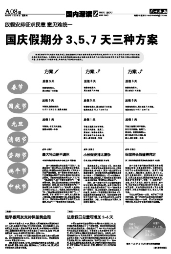 国庆假期分3、5、7天三种方案