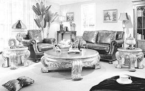 奢华而雍容的欧美家具正好是“土豪金”的典型代表。除了厚实的皮布外,就是金属色的实木雕线,甚至大多是纯手工作品,独一无二,百看不厌。