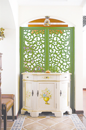 提醒:不规则空间应该根据人进门后走道流动的路线,在这个路线上对空间进行分割。对于狭长的走道来说,如果装饰风格定位比较明确,就可以结合顶面及墙面装饰让走道成为一个独特的装饰空间,例如做成照片墙、画报墙都是比较流行的装饰方法。“L”户型的转角处还可以设计为储物空间,解决客厅储物功能不足的问题。