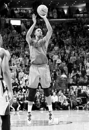 面对本场上门挑战的弱旅山猫队,热火队显然有些轻敌,最后一节山猫一度领先14分,热火发力后将分差缩小但一直未能追平。此时波什挺身而出,以一种不同以往的方式统治了比赛,他在外线三投三中,帮助热火将比分反超,并最终拿下山猫。