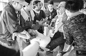 反政府示威者被催泪弹击中后接受治疗