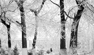 这是12月3日在内蒙古自治区牙克石市街头拍摄的雾凇景观。