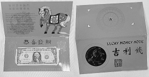 美国财政部造币和印钞局当日宣布,为庆祝即将到来的中国农历马年,自4日起发行2014年版生肖马主题限量版“吉利钱”一美元纸币。