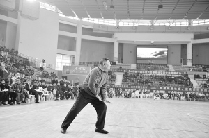 日前,2013年全国心意六合拳研讨交流大会在安徽省明光市举行,周口心意六合拳协会应邀参会。协会会长、国家非物质文化遗产心意六合拳代表性传承人买西山在大会上大秀绝技,赢得满堂彩。 晚报记者 李伟 通讯员 买建军 摄
