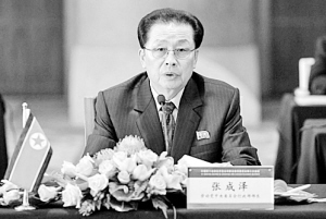 同年8月,张成泽以朝鲜劳动党中央政治局委员、中央行政部部长、国防委员会副委员长身份率领朝方代表团访华,出席中朝两个经济区开发合作联合指导委员会第三次会议。