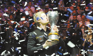 本报综合消息尼尔·罗伯逊成为斯诺克新生代领军人。北京时间昨晨,现世界排名第一的罗伯逊以10∶7逆转战胜塞尔比,捧起斯诺克英锦赛冠军奖杯,成为首位包揽三大满贯的80后球手。