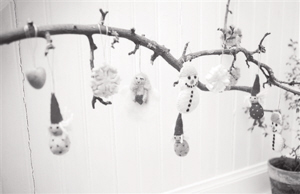 各种造型的雪人挂饰,吊在原色的树枝上,放在墙面或角落,都能增添节日的趣味性。