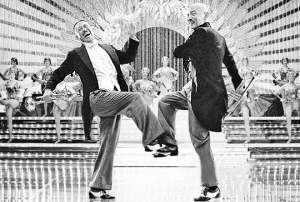 15日曝光的这张剧照,主题形象为姜文、葛优在舞台上手持小号合作起舞,两人身着经典“三件套”,在一排百老汇舞女的陪衬下大跳踢踏。金碧辉煌的舞台、性感撩人的舞女,营造出奢华梦幻的背景。