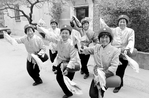 李爱真所带领的腰鼓队就在其中,她们伴随着欢快的节拍不时变换队形,“我们的腰鼓打得好,大红色的衣服也特别鲜艳。当时,我们越打越高兴,报社的记者就给我们拍了照。”李爱真笑着说。