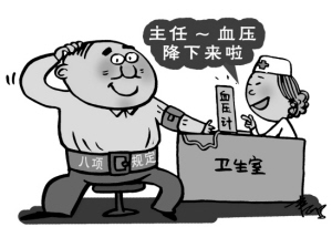 应酬少了,“腐败肚”缩了,血压也降了,办公室主任的变化映衬了“八项规定”带来的世风之变。这些年,公款吃喝愈演愈烈,“革命小酒天天醉,喝坏了党风喝伤了胃”。在“接待就是生产力”的旗号下,什么工作、关系协调,都少不了“碰杯”。甚而有些单位办公室主任的选拔,酒量大小也成为潜在任职硬件。而酒桌上浪费的公帑,更不知多少。