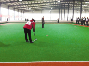 本报讯 正确站位,精确瞄准,准确击球……场上队员专注比赛,热情十足。12月18日,为期两天的“体彩杯”2013年市老年人门球赛在市体育中心门球场开赛,这标志着市老年门球健身基地正式启用。据了解,当天共有来自全市各县市区的24支队伍200多名老年人参赛。