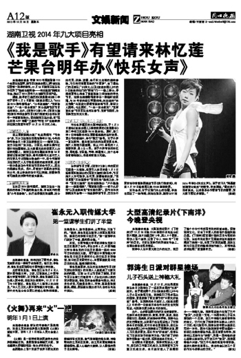 发布会后,对于记者们关心的话题,李浩也回应了一些传闻,例如他表示,湖南台计划2014年举办《快乐女声》。至于前不久“陶晶莹被湖南台封杀”的事情,李浩则说:“最近我们没有联系,以后是否合作要看节目的需要,请大家不要过多解读。”(张漪)