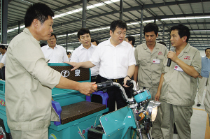 市委书记徐光在西华县委书记王田业,该公司副总经理张记山陪同下到金鑫车业了解企业生产经营情况
