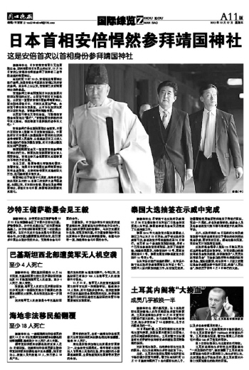 日本首相安倍悍然参拜靖国神社