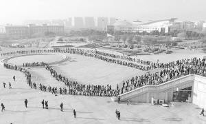 12月29日早晨,南京财经大学图书馆门口,学生排起了长队有序进入。随着气温的下降,安装有空调等取暖设备的图书馆、教室成了大学生们周末看书自习的最佳去处,而固定的座位数使得不少学生纷纷早起,顶着寒风排队等候进入,场面堪比春运。泱波 摄