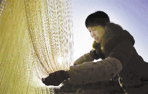 洁白的线面宛若银丝在风中飘荡,成为鄱阳湖畔别致的乡村景观。位于鄱阳湖畔的江西省都昌县左里镇秦家圈有制作手工拉面迎新年的传统。村民经和面、发酵、盘条、拉面、晾晒等多道工序,手工制作成细润绵长、风味独特的面条。