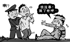 近些年来,关于城管的负面新闻实在太多了,比如“城管打死瓜农”、“跳踩摊贩脑袋”之类丑闻,无不引起社会公愤。难怪城管给公众的印象往往和粗暴、野蛮联系在一起。所以,当看到这则充满正能量的新闻时,一些网友习惯性质疑其真实性。毕竟,按照他们想象中的“剧情”,小贩打城管就有点“反常”;城管被打伤没有“发狠”,更出乎意料;而受伤城管反为打人小贩求情,几乎是难以想象了。但想象归想象,事实归事实,这名城管的宽容大度,让冲动的年轻小贩免于留下案底,值得点赞。