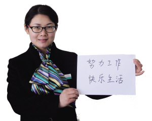 | 李小丽在农行周口分行工作,如今她已上班了3年了,现在是营业部大堂经理。“努力工作,快乐生活”成为她2014年一个小小愿望。