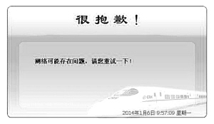 根据历年经验,过了农历“小年”后,春运火车票开始进入购票高峰期。昨日8时开始发售1月24日的火车票,9时许,记者发现铁路购票12306网站登陆时非常缓慢。10时后,记者再次登陆12306网站时,发现网站处于间歇性崩溃状态。在此期间,记者换一种登陆方式,用春运火车票发售初期效果良好的12306手机客户端进行尝试,发现12306手机客户端也无法登录。