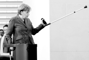 默克尔2011年4月5日在德国柏林出席招待会的资料照片。