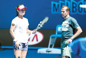 1月8日,中国球员李娜(左)和教练卡洛斯在进行训练。
