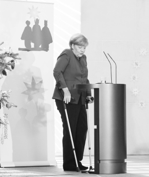这是默克尔在滑雪受伤后首次露面。默克尔此前在瑞士恩加丁地区度假,在一次长距离滑雪中摔倒,导致“严重擦伤伴随左后侧髋骨不完全骨折”。