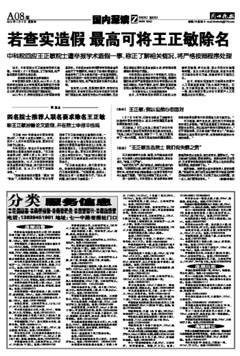 若查实造假 最高可将王正敏除名