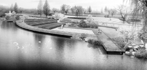平湖秋月:该景点位于东外环以西南岸河堤以外,通过打通场地原有的坑塘,形成相对开阔的湖面。堤顶路延伸下来的台阶式木栈道将游人引至湖边,湖水的可控性使亲水力更强,此处可以开展更多的水上活动。