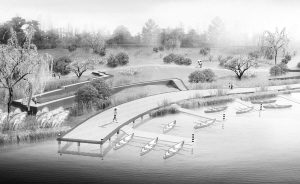 皮划艇港湾:建设皮划艇码头,用以皮划艇项目的训练、比赛并兼做停船码头与亲水栈道。由二级园路通向景点具有落差与折转的栈道,给人以步移景异之感。周边完善的配套服务设施,更好的满足运动员、游人、市民的多种使用需求;