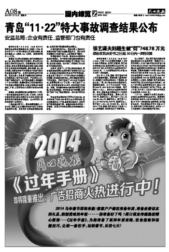 新华社北京1月9日电 (记者 陈炜伟) 国家安全监管总局新闻发言人黄毅9日说,青岛中石化“11·22”特大事故认定为责任事故,事故共造成62人遇难,136人受伤,直接经济损失7.5亿元。