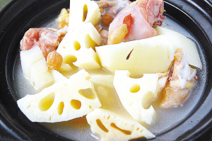 生藕,性寒。有清热润肺,凉血行淤,清烦热,止呕渴之功,适用于烦渴、酒醉、咳血、吐血等症;熟藕,其性也由凉变温,可健脾开胃,止泻固精。老年人常吃藕,可以调中开胃,益血补髓,安神健脑,经常食用,可使身体轻松并且能耐寒,不饥饿,延年益寿。