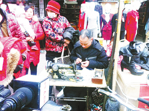 年近五旬的王师傅,擅长维修拉链的手艺在周口荷花市场远近闻名。看似不起眼的一个小拉链坏了以后,衣服就没法再穿了,他的摊位前总是有等待修理拉链的市民在排队。甭管什么样的毛病,在他手里面不到个把分钟,如变魔术一般就搞定了,并且收拾得严丝合缝和顺手。20多年的寒来暑往,他诚信经营、收费合理,靠着这个手艺为市民带来方便的同时也一并在养家糊口。几把小钳子、小镊子、小冲锤和几大盒子的拉链备件,再加上一台缝纫机就是整个维修工作台。当他伸出一双经过岁月磨砺、布满老茧的双手时,让我们心中顿时生起对这位平凡劳动者的敬意!