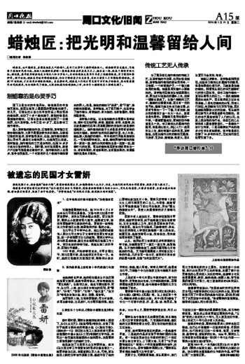 进入高学勤的蜡烛作坊,记者看到,高学勤正忙着给蜡烛整形,大屋子里摆放着许多红蜡烛。在得知记者的来意后,高学勤很高兴,他说,制作蜡烛靠的是心灵手巧,称自己为蜡烛匠人,他感到无比自豪。高学勤说,制作蜡烛的工艺是祖传的,他到30多岁才成为父亲的传承人。那时候,农村还没通电,家家户户过春节都是靠点蜡烛守岁,制作蜡烛的人也很多,竞争也很激烈,一个村就有好几个靠制作蜡烛营生的匠人。但是,谁做的蜡烛不“流泪”,是“干碗”,谁的蜡烛就畅销。高学勤说,为了吸引客户,他还学会了制作蜡台,有砖烧的,有木制的,也有瓷器的,都是搭配着卖。