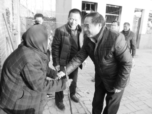 “您老人家可好呀!我来给您拜个早年……”1月20日下午,市交通局一行6人来到商水县平店乡平店村、雒庄村,走访慰问困难群众,为30多户特困户、计生户送去万余元节日用品。图为慰问现场。