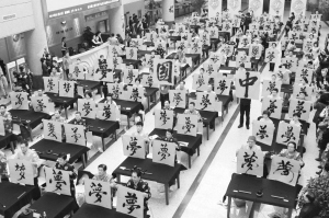 当日,由大连市甘井子区政府主办的“2014中国梦”之“百福临门”大型新春笔会在甘井子图书馆举行,百名书法爱好者现场书写“福”“梦”等字和贺年春联,并将作品送给市民,以传递新春美好祝福。新华社发