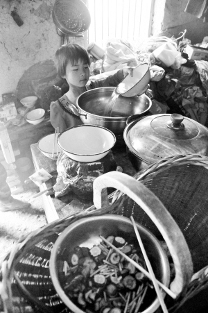穷人的孩子早当家。父母双双患病后,兄妹俩为这个风雨飘摇的家庭苦苦打拼着。春兰父母连年治疗欠下外债尚未还清,去年春节过后,哥哥随乡亲一起外出打工挣钱还债。小春兰则在家悉心照顾爸妈。她每天五点起床做饭,给爸妈端饭喂饭。晚上吃过饭,小春兰坚持把当天的作业做完,陪妈妈看一会电视才睡觉。她没有上澡堂洗过澡。春兰说:“我自己烧水洗头、洗澡,给妈妈洗头。”星期天,小春兰要洗衣服了,夏天的薄衣服她用手搓洗,冬天的厚衣服洗起来就很困难。5岁时,她学会用洗衣机了。个子低够不着洗衣机开关,她就站到板凳上。冬天的棉衣沉她拿不动,就请邻居帮忙拎出来。