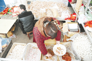 近日,记者来到商水县魏集镇,找到一家仍用传统方法炸果子的家庭作坊,遗憾的是他们已炸完了果子,堆成小山的果子就剩下包装了。据作坊主人介绍,他们一般腊月二十左右就开始炸果子,两三天就炸完了,炸的果子够一个春节卖的。