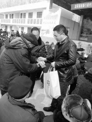 近日,周口市区一家英语学校购买米面油,免费送给川汇区七一路办事处的300户低保户,并为他们送去新年的问候。