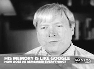 布拉德的大脑就像是一本关于名字、照片、日期和各种事件的剪贴簿,过去生活中发生的每个事件,都会在布拉德的大脑中“编成目录”,他任何时候进行回忆,都能立即从“大脑百科全书”中找到需要的东西。布拉德的大脑被比喻成是“人体谷歌”,因为他只要到大脑中进行搜索,就能立即找到某个老新闻发生的具体日期,甚至事发当天的天气情况!