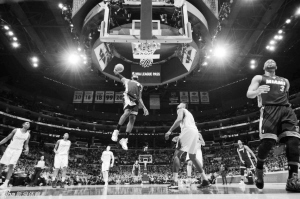 第三节,快船队员乔丹空中接力扣篮,格里芬此后也突破扣篮得手,双方掀起“扣篮大赛”的高潮。随后热火球员安德森在本节还有3分钟时也空中接力扣篮,热火以83∶71领先。