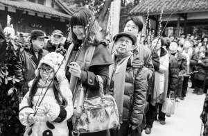 民俗专家介绍说,正月初七,传说是人类的诞辰日,即人的生日,中国民间叫作“人日”“人日节”或“人胜节”。作为古老节日,“人日”在我国已有2000多年的历史。“人日”游草堂是成都市民春节期间的重要风俗,每到这天,人们前来杜甫草堂凭吊诗圣、吟唱诗歌、赏梅祈福。
