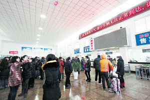 2月7日上午,记者在周口客运中心站候车大厅看到,受天气因素影响,部分客车发车时间晚点,造成少量旅客滞留(如图)。而在该车站出站口,周口发往北京、温州、南阳、洛阳等地的省市际班车陆续驶出车站,不过,车辆的后轮已安装上防滑链。