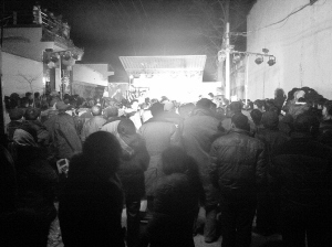 演出当天,记者在现场看到:台上,戏曲、舞蹈、小品、独唱……演员们表演得激情四射;台下,欢笑声、掌声、喝彩声不断,整条街道上挤满了人,原本宽阔的街道好像忽然间窄了许多(如图)。舞台前面,有几个小朋友挤上舞台想看个过瘾;舞台后面,不少村民踮起了脚尖、伸长了脖子。摩托车上、三轮车上、平房上,舞台周边所有的“制高点”上都站满了人,他们都想把精彩的节目尽收眼底。再看空中,流光溢彩的各色礼花争奇斗艳、遥相辉映,其间,还有几位村民专门负责安全问题,以防踩踏等事故发生。近两个小时的烟花歌舞晚会,不仅让乡亲感受到了浓浓的年味,也让他们在家门口享受到一顿艺术盛宴。